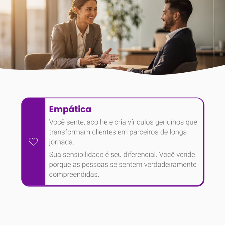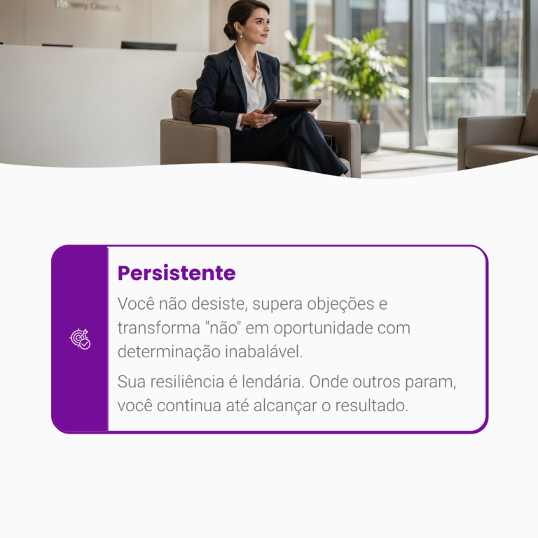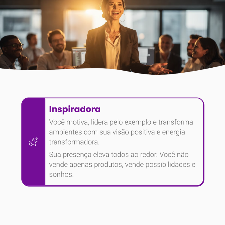 Quando você entende como vende naturalmente, para de lutar contra si mesma. Você potencializa seus talentos, acelera resultados e vende com mais leveza e autenticidade.